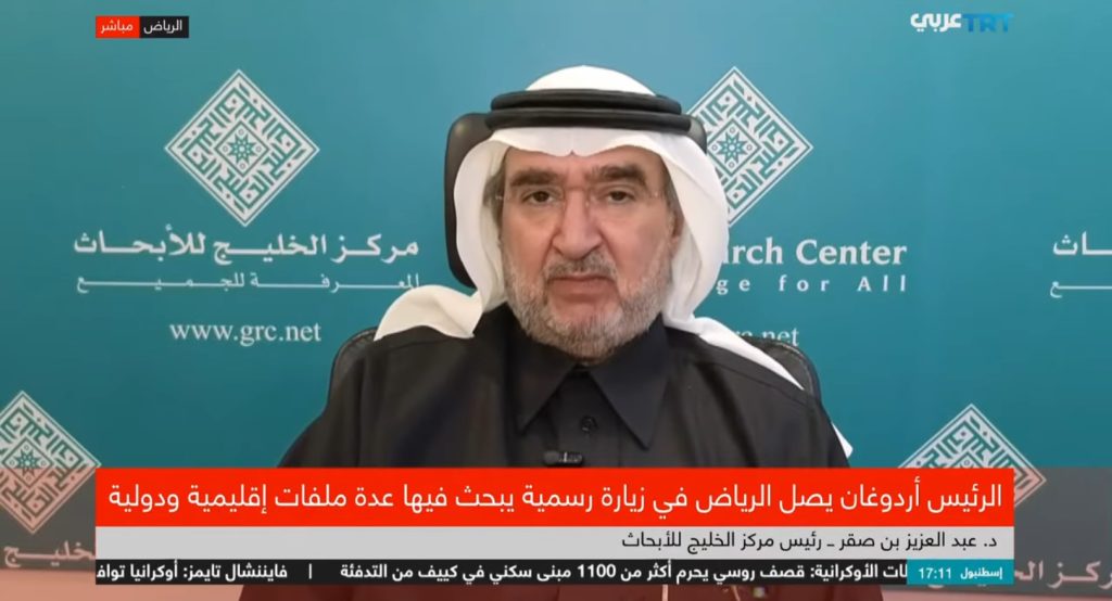 مداخلة رئيس مركز الخليج للأبحاثالدكتور عبدالعزيز بن صقر،ضمن نشرة أخبار القناة التركية “TRT عربي”، حول الزيارة الرسمية لرئيس الجمهورية التركية