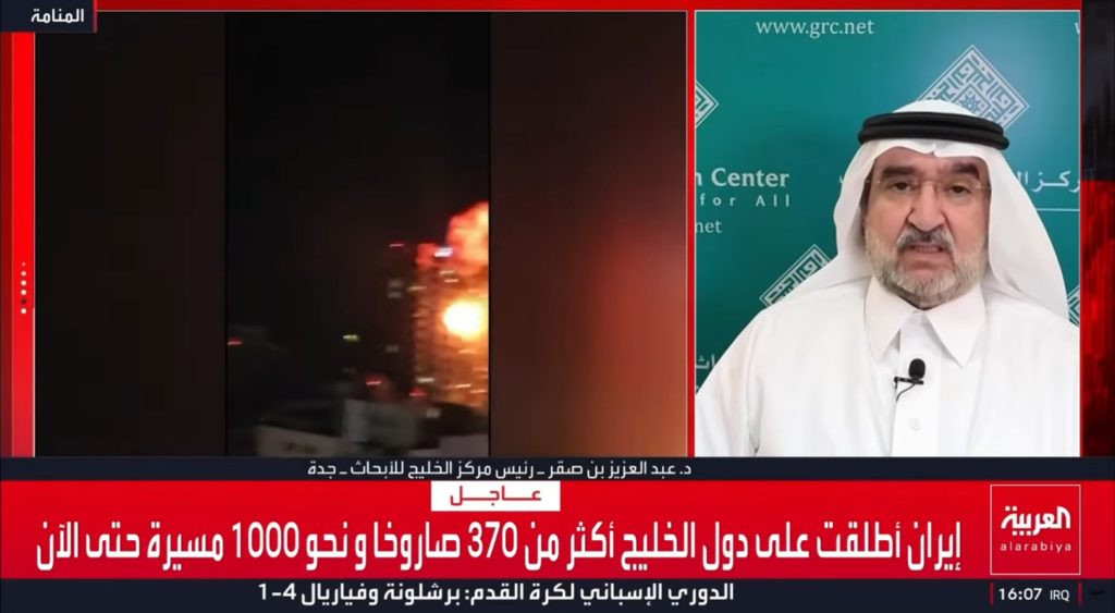 مشاركة رئيس مركز الخليج للأبحاثالدكتور عبدالعزيز بن صقرعلى قناة العربية، ضمن التغطية الخاصة للحرب على إيران 🔗https://youtu.be/dc3eBMoGsG81 مارس 2026م