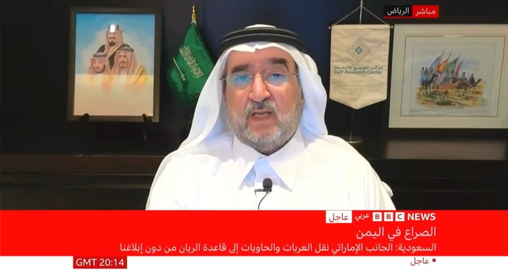 مداخلة رئيس مركز الخليج للأبحاث،الدكتور عبدالعزيز بن صقر،عبر قناة (BBC عربي) حول آخر التطورات في اليمن، ضمن خبر بعنوان:«الصراع في