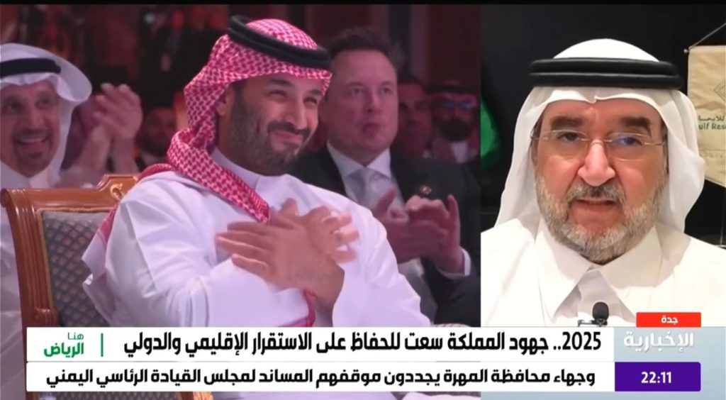 مشاركة رئيس مركز الخليج للأبحاثالدكتور عبدالعزيز بن صقر،في برنامج (هنا الرياض) على القناة الإخبارية، في حلقة بعنوان:المملكة في 2025.. السياسية