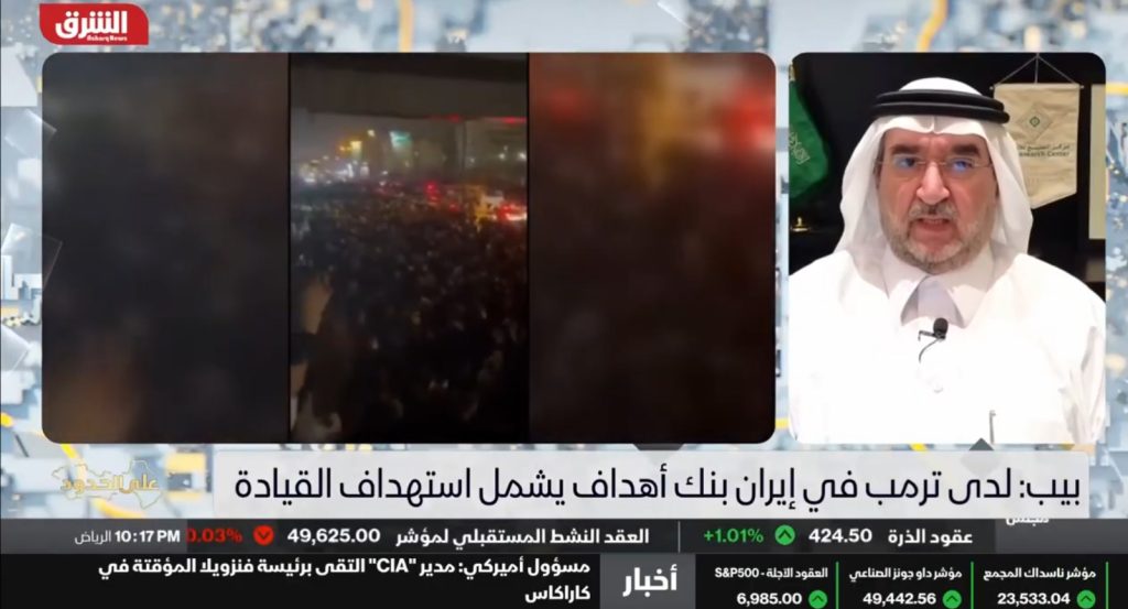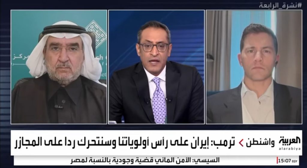 مداخلة رئيس مركز الخليج للأبحاث،الدكتور عبدالعزيز بن صقر،ضمن نشرة «الرابعة» على قناة العربية، حول تهديدات الرئيس الأمريكي دونالد ترامب بالتدخل