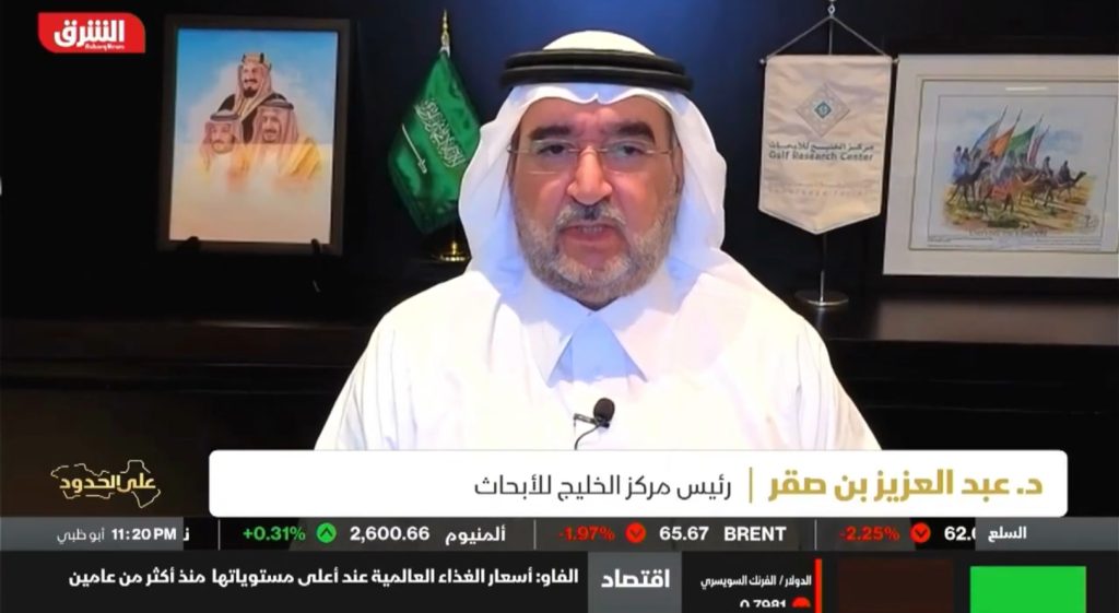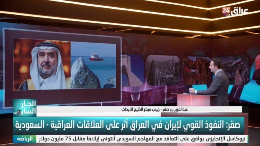 مشاركة رئيس مركز الخليج للأبحاث، الدكتور عبدالعزيز بن صقر في برنامج #الجار_السابع مع علي قازان على قناة “عراق 24″، في