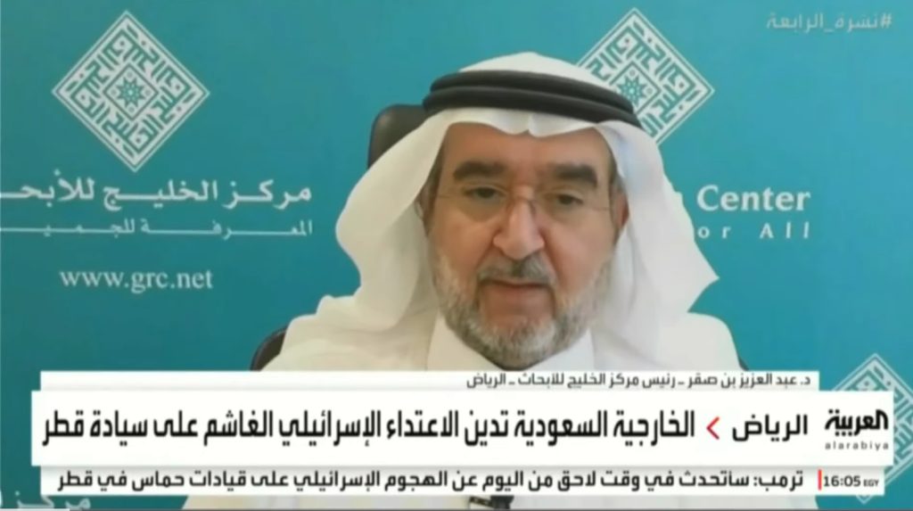 رئيس مركز الخليج للأبحاث عبدالعزيز بن صقر: نتنياهو يريد إفشال مسار حل الدولتين وتهجير سكان غزة. وواشنطن داعم إسرائيل الأساسي